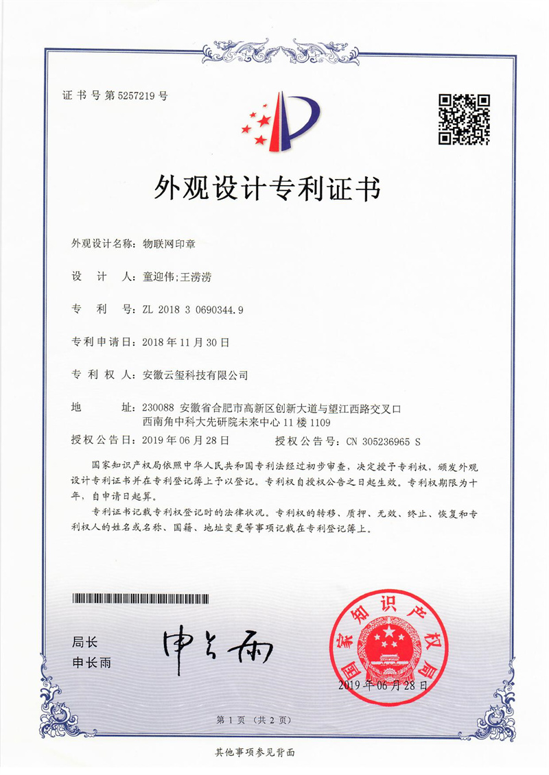 公司原創(chuàng)發(fā)明一體式智能印章技術(shù),引領(lǐng)國(guó)內(nèi)外新一代智能印簽創(chuàng)新變革。獲中日韓多項(xiàng)發(fā)明專(zhuān)利,徹底解決了實(shí)體印章和電子印簽管控的社會(huì)難題,獲國(guó)務(wù)院國(guó)資委全國(guó)央企熠星二等獎(jiǎng)。公司聯(lián)合國(guó)家信息安全產(chǎn)品認(rèn)證中心、公安部三所、信通院、中國(guó)印章協(xié)會(huì)等,主導(dǎo)起草了行業(yè)首個(gè)智能印章安全認(rèn)證標(biāo)準(zhǔn)和智能印章產(chǎn)品標(biāo)準(zhǔn),引領(lǐng)了智能印章行業(yè)發(fā)展。